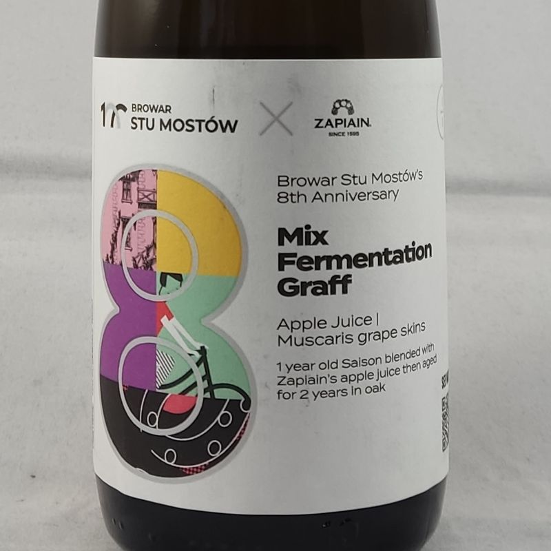 The beer was created in collaboration with Zapiain Sagardoa. It was from our friends that we got fresh Basque apple juice two years ago. We combined it with our year-old mixed-fermentation saison, which was fermented on grape skins of the Muscaris strain. We then let it ferment together for two years. The result is a beer that combines the characteristics of natural dry ciders from the Basque Country, our mixed-fermentation Saison and the character of the Muscaris grape.