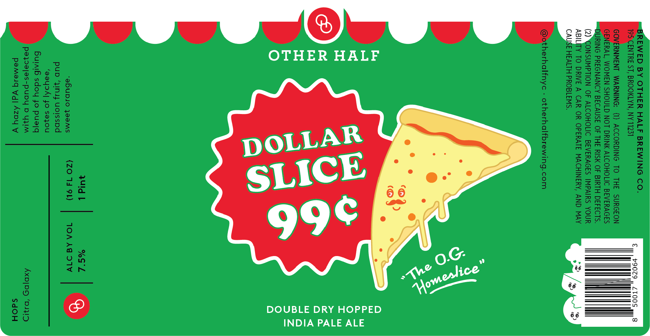 Who doesn’t need a late night dollar slice when out partying? This is a Vermont yeast IPA with Citra and Galaxy with an extra helping of both hops.