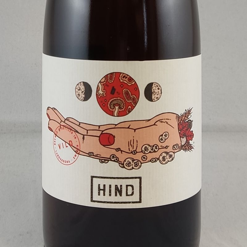 Hind is a natural beer aged in bourbon barrels for 12 months, then blended with Scanian raspberries. Hind is part of the Brekeriet Vild series.