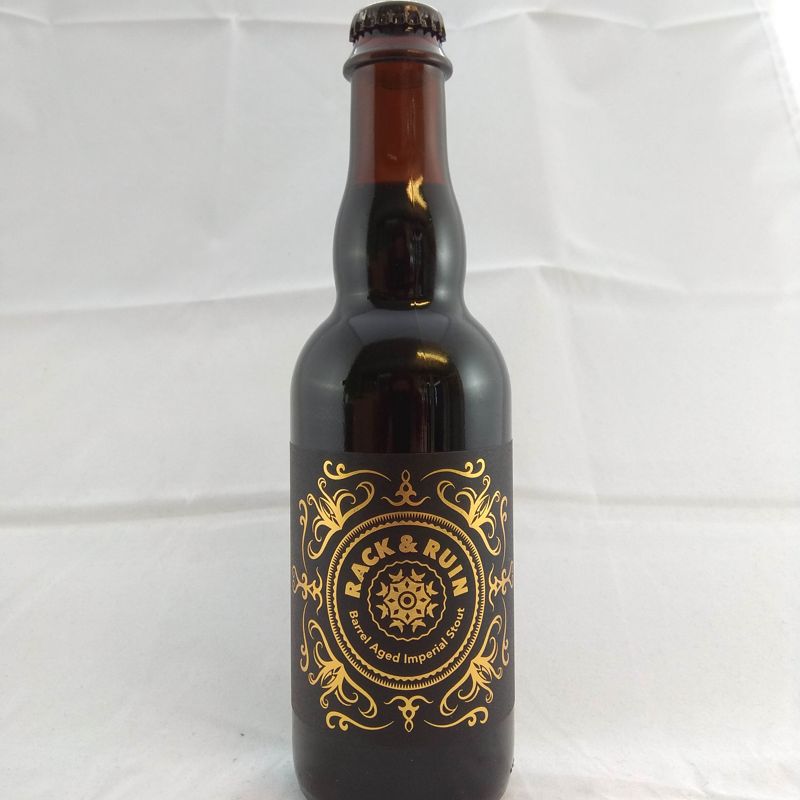 After brewing this imperial stout, it was aged in bourbon barrels for 14 months and conditioned on vanilla beans, almonds, cacao, and pecans.