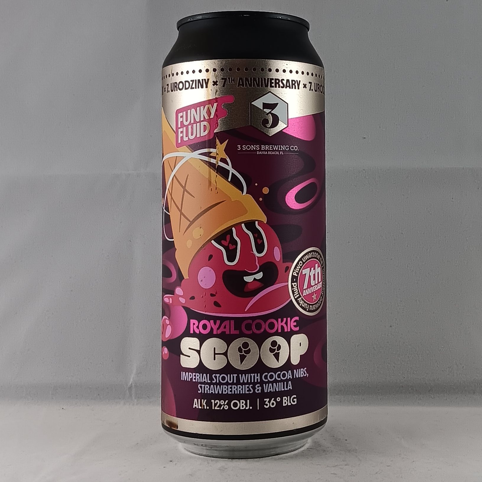 A collab with a legendary brewery from Dania Beach, Florida, whose beers we’ve been chasing down since their homebrew days. 3 Sons once showed us that strawberries and Imperial Stout are a perfect match – and now we’re brewing an Imperial Stout together, packed with cocoa nibs, vanilla, and strawberries. 36blg